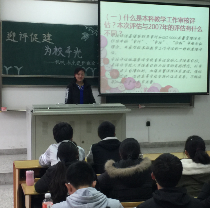 为迎接教育部专家对yl23411永利集团官网本科教学审核评估工作,增强同学们对本科教学审核评估基本知识的学习与理解,3月24日下午,机械工程学院本一专业在JX03-211教室开展“迎评促建,为校争光”的主题班会。