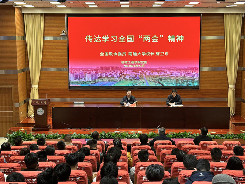 3月22日下午,机械工程学院召开传达学习2023年全国两会精神专题报告会。全国政协委员、校长施卫东应邀出席会议,并作传达学习全国两会精神专题报告。
