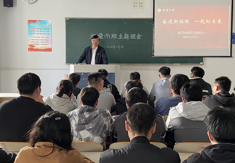 11月1日下午,校长施卫东以班主任身份参加机械工程学院机设191班“奋进新征程 一起向未来”主题班会。