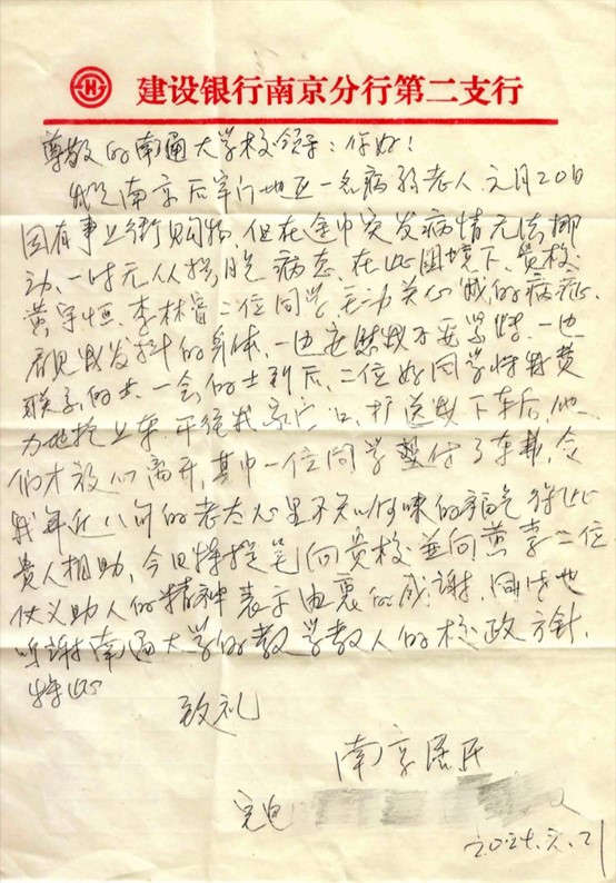 我院收到一封关于机械青年扶老助弱的感谢信