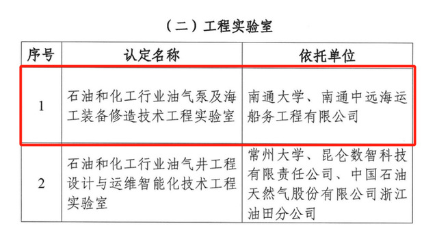 近日,中国石油和化学工业联合会发布《关于认定2024年度石油和化学行业创新平台的决定》。由yl23411永利集团官网施卫东团队牵头、与南通中远海运船务工程有限公司共同申请的石油和化工行业油气泵及海工装备修造技术工程实验室,被列入创新平台建设计划。