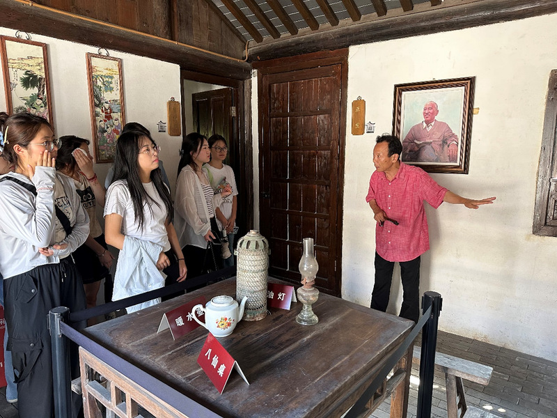 随后,大家怀着崇敬的心情来到刘瑞龙故居。这座朴素的江海民居,是杰出的无产阶级革命家、中国工农红军第十四军的参与领导者之一刘瑞龙同志早年生活和学习的地方。通过展厅内的历史照片、文献实物和生平事迹介绍,同学们深入了解了刘瑞龙同志投身革命、无私奉献的光辉一生。从参与领导苏北农民武装起义,到在抗日战争、解放战争中屡建功勋,再到新中国成立后为农业发展鞠躬尽瘁,他坚定的革命信念和一心为民的公仆精神深深感染了在场的每一个人。