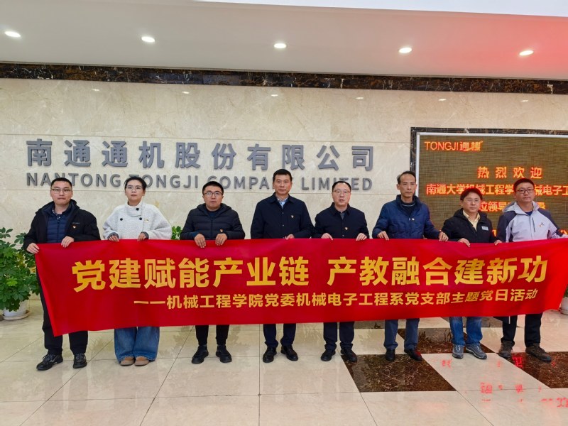 12月12日,机械工程学院机械电子工程系党支部赴南通通机股份有限公司开展“党建赋能产业链,产教融合建新功”主题党日活动,旨在进一步贯彻落实“强链兴企·校地融合”战略,在党建引领下深入推进与市产业链党建联盟企业的合作交流。