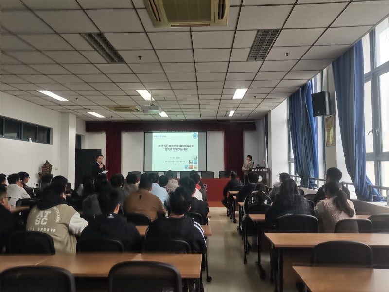 苏彩虹教授在报告中主要介绍了飞行器常载有光学窗口用于侦察、监视和目标识别,以搭载光学窗口的圆柱体为研究对象,采用流固耦合方法,模拟了高速飞行条件下喷流冷却对窗口表面流动与传热的影响,并基于光线追迹法评估由此引起的光学畸变,指出不同喷流速度下窗口表面呈现出差异显著的流动结构,进而影响气动光学效应,并进一步探讨了不同飞行高度下气动光学效应的影响规律。报告后,苏彩虹教授与会师生进行了积极的互动交流,详细解答了师生们关于高速飞行器光学等方面的问题。