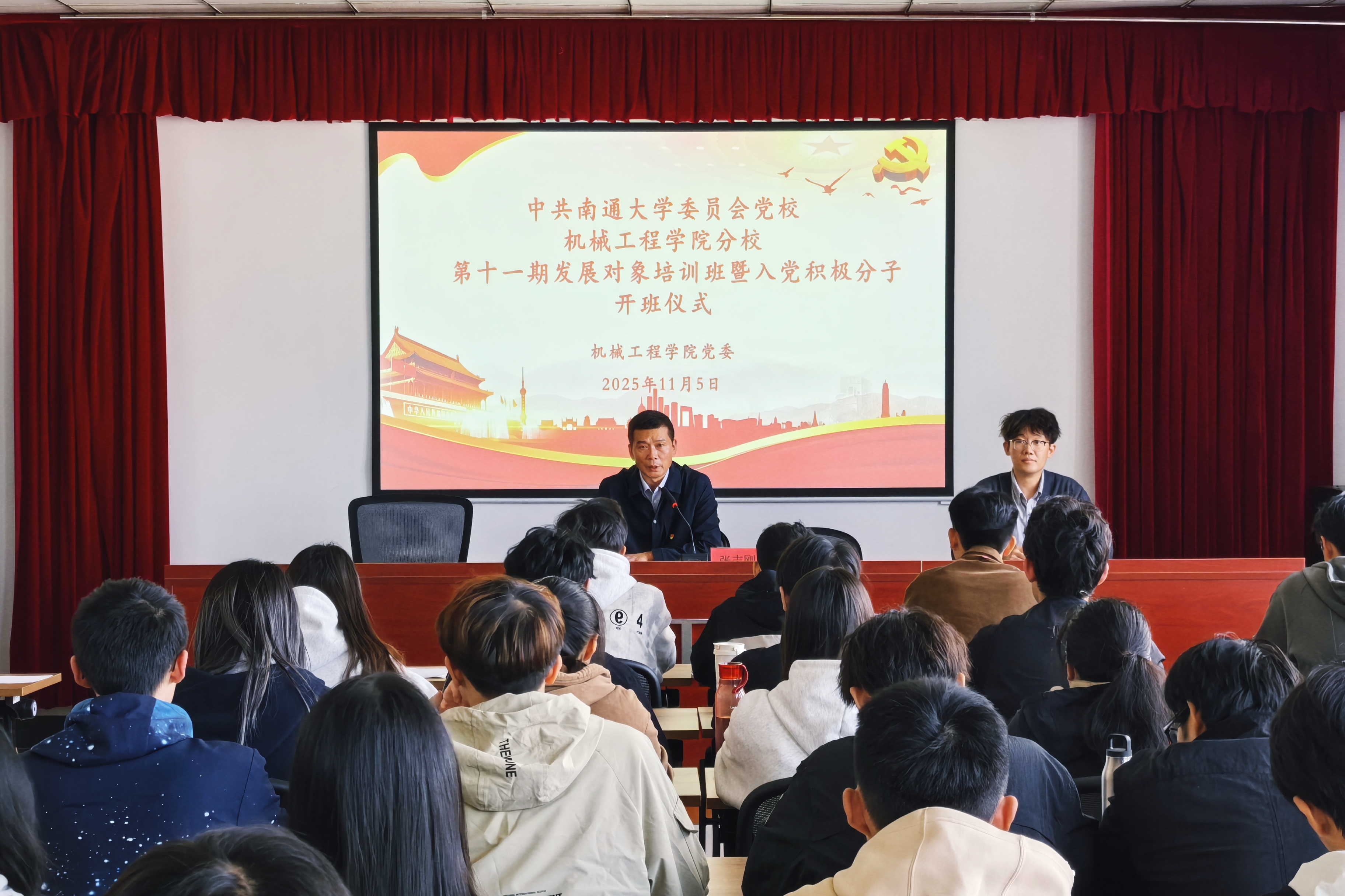 为切实加强入党积极分子及发展对象的思想政治建设,夯实理想信念根基,提升其政治理论素养与思想觉悟,引导树立正确入党动机,11月5日至14日,机械工程学院分党校举办第十一期发展对象暨入党积极分子培训班。学院全体党员发展对象、入党积极分子参训,通过系统化、多元化的学习实践,接受党性教育与思想淬炼。此次培训以专题讲座、影片观摩、实践研学相结合的方式进行。